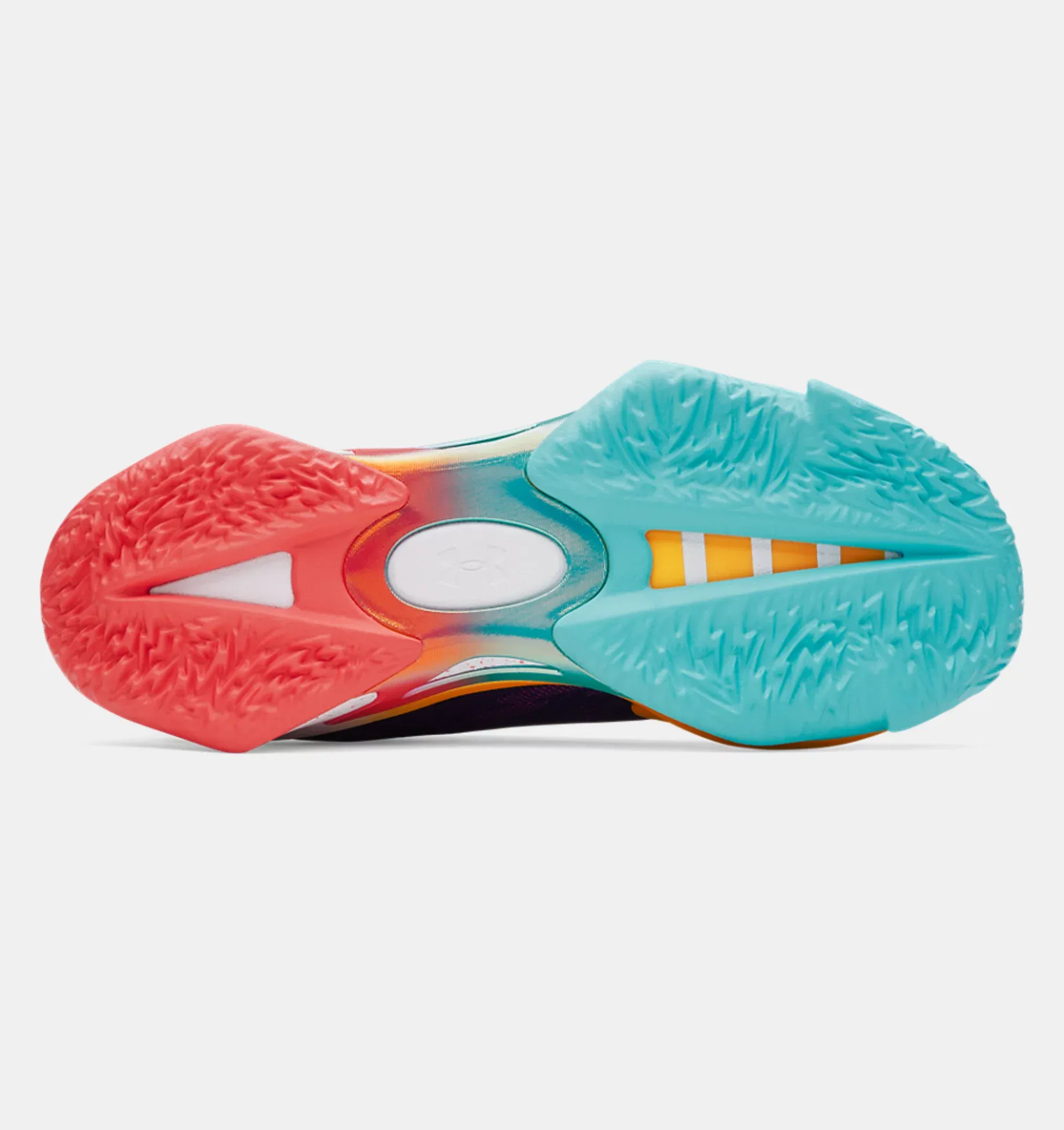 - فناوری UA Flow: این کفش با بهرهگیری از تکنولوژی Flow آندر آرمور (که در نسخههای بعدی کری نیز استفاده شده)، یک تجربه فوقالعاده سبک و انعطافپذیر را فراهم میآورد. UA Flow نه تنها به عنوان بالشتکگذاری، بلکه به عنوان زیره کفش نیز عمل میکند، که منجر به حذف لایه لاستیکی سنتی و کاهش چشمگیر وزن میشود.