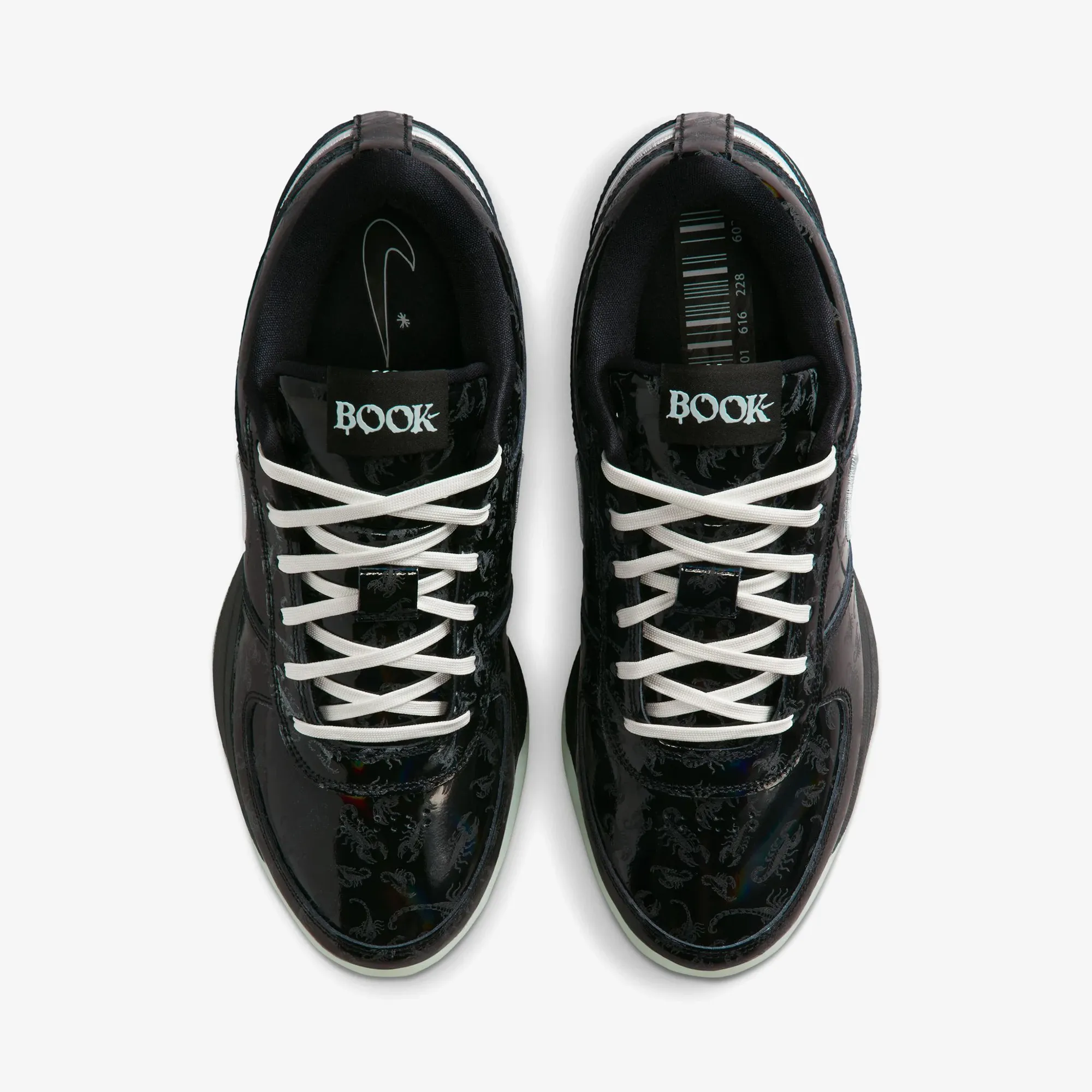 مدل Nike Book 1 ‘Scorpion’ اولین کفش امضای دوین بوکر است که با الهام از عقرب پوست آریزونا (Arizona Bark Scorpion) طراحی شده است؛ موجودی که در طول شب و زیر نور UV میدرخشد، دقیقاً شبیه به درخشش بوکر در زمین بسکتبال. این کفش ویژگیهای عملکردی و استایلی منحصربهفردی را به همراه دارد.