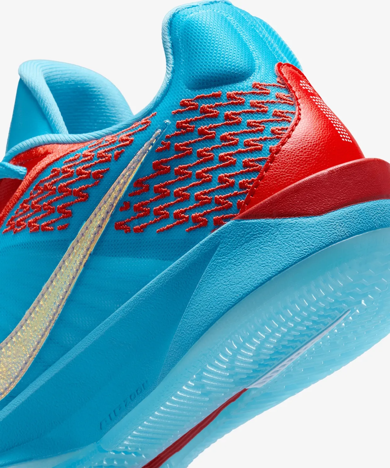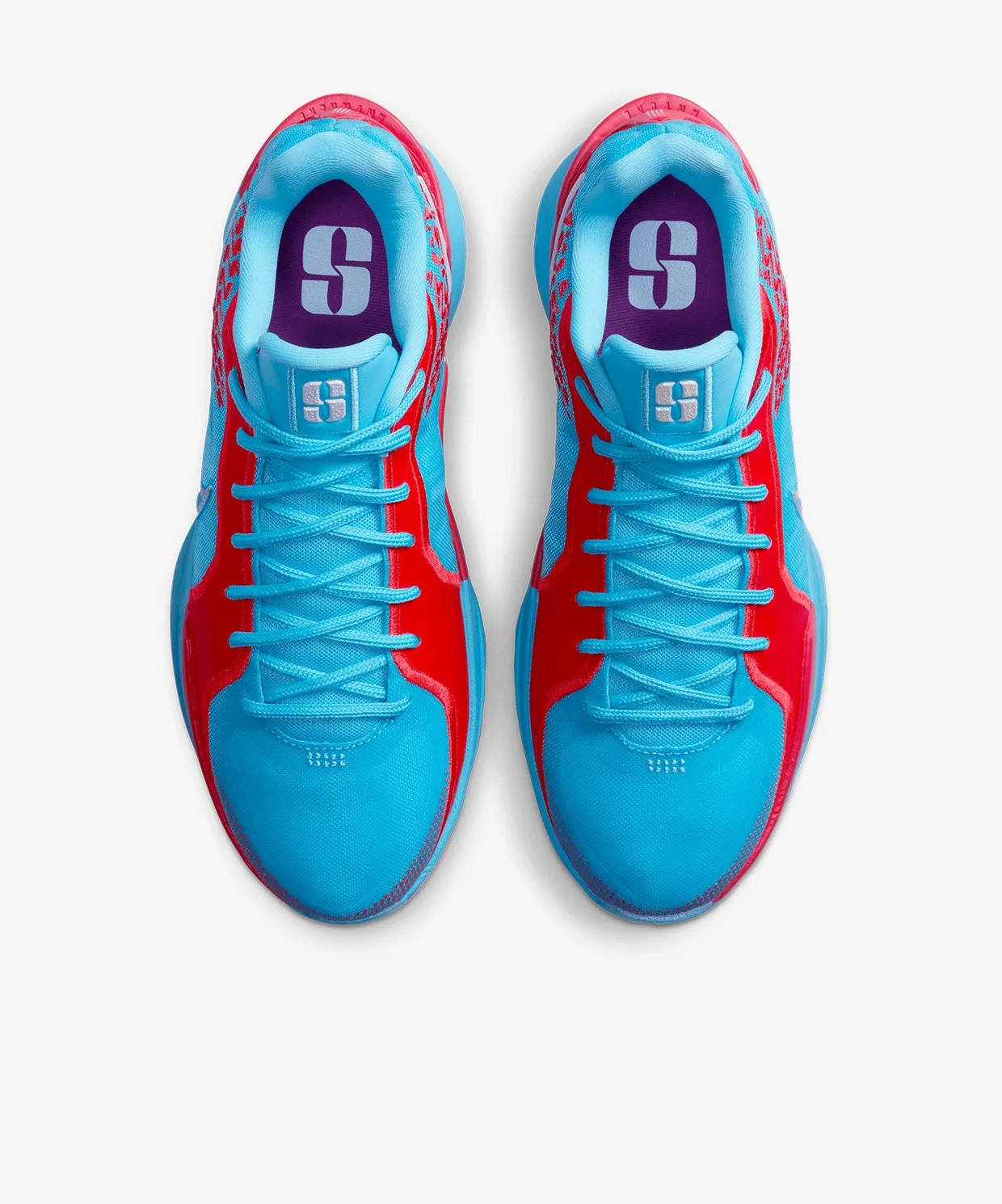 رنگهای آبی بالتیک و قرمز یونیورسیتی، الهامگرفته از نوشیدنیهای اسلارپی ۷-۱۱ است. رویه مشبک با جزئیات الگودار، حس خنک و تازه نوشیدنی را القا میکند. لوگوی Swoosh برجسته و زبانه با گرافیک اسلارپی، این کفش را به گزینهای جذاب برای بسکتبال و استایل روزمره تبدیل کرده است.
