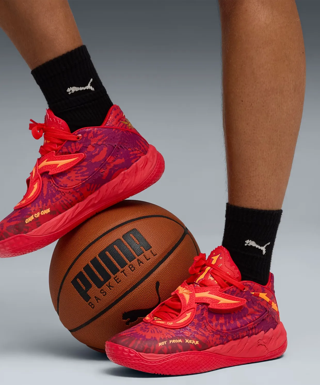 مدل PUMA MB.05 “Encore” با ترکیبی آتشین از قرمز و زرد وارد فصل 26-2025 میشود. این کفش ادامهدهنده خط تولید امضای لاملو بال با شعار “One of One” است و بر تمهای جسورانه و غیرعادی در طراحی تمرکز دارد. این نسخه نه تنها رنگی پرانرژی دارد، بلکه نشاندهنده تمایل پوما و لاملو برای آزمایش طرحهای جدید فراتر از صرفاً تغییر رنگ است.