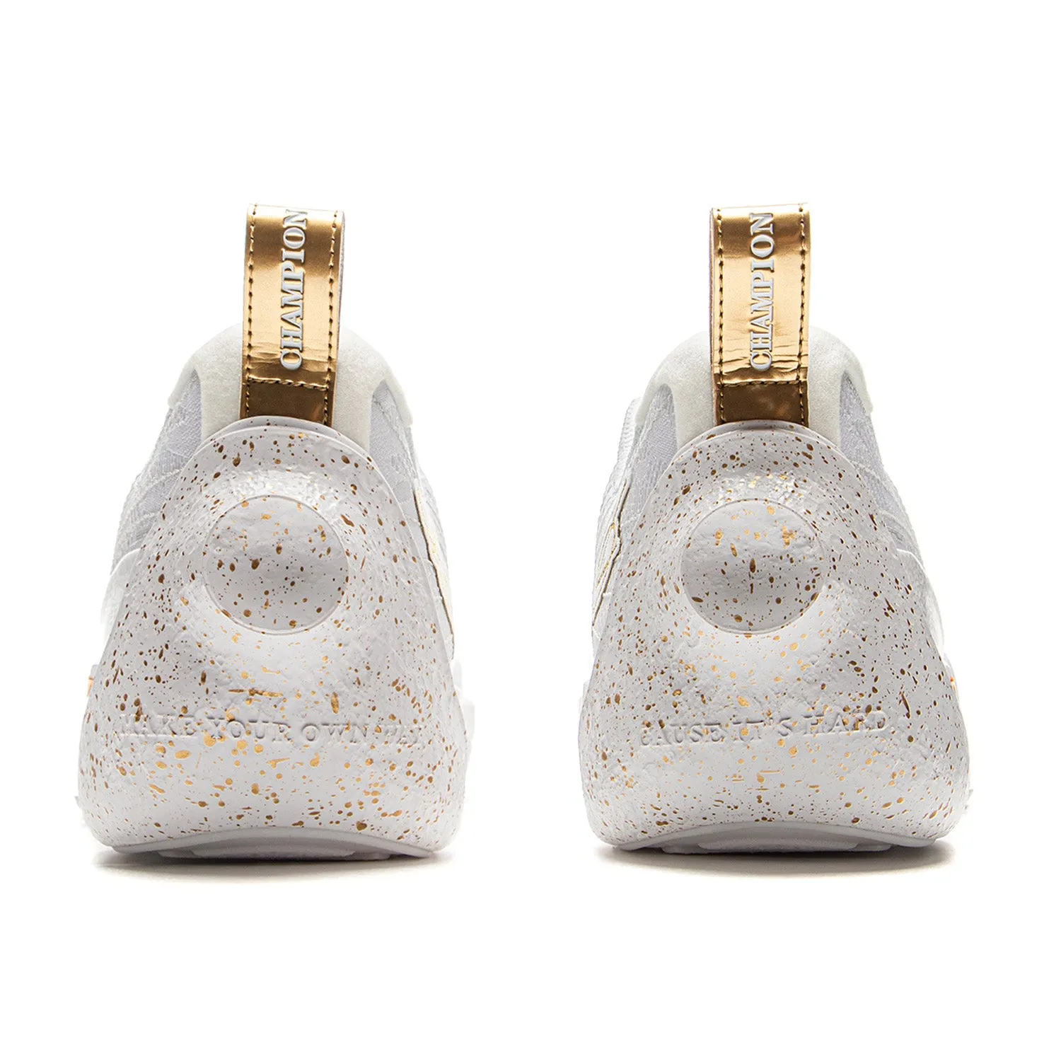 | جزئیات طراحی | رنگ اصلی سفید، با عناصر طلایی. طرح غارهای ماه در پاشنه و امضای Dwyane Wade. |