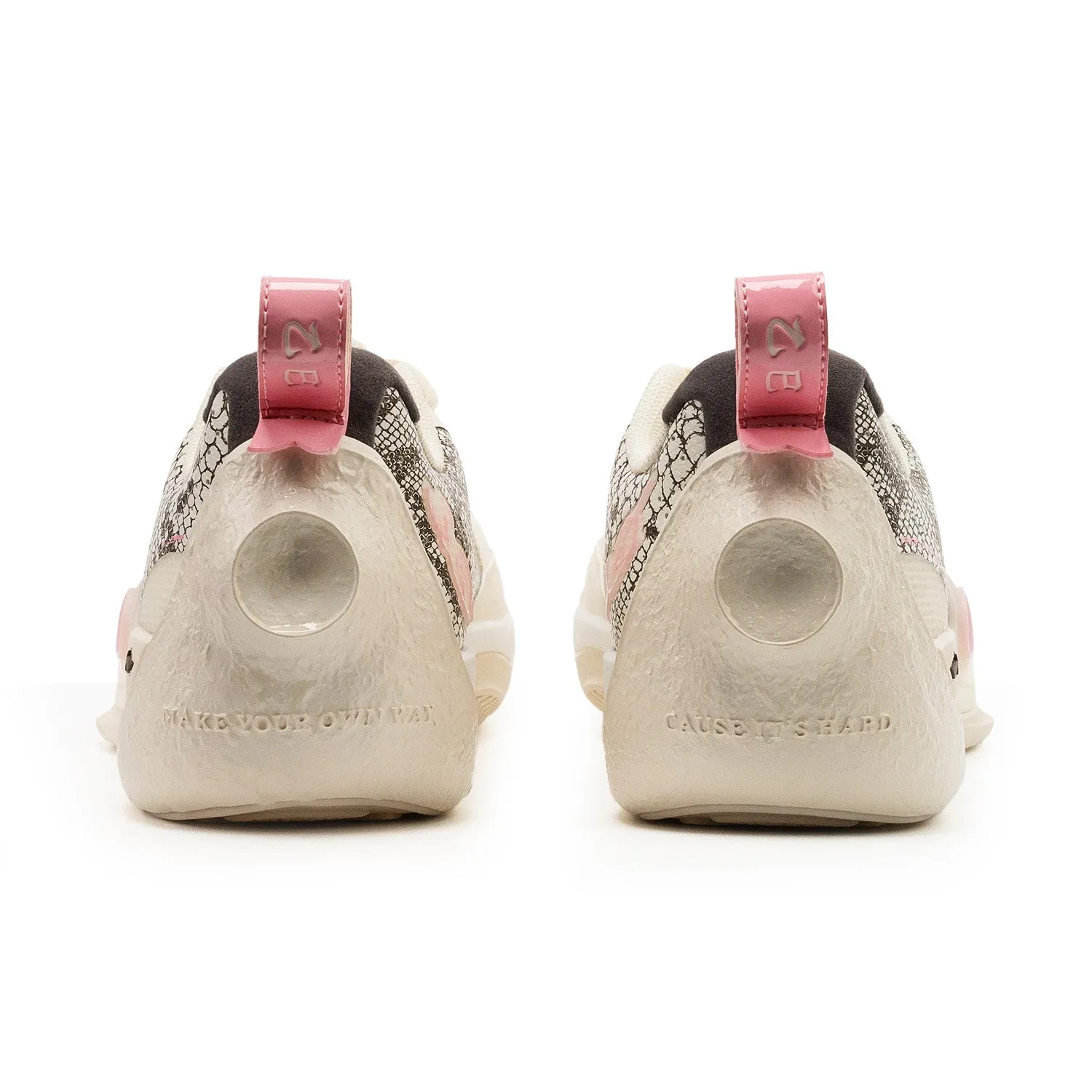 | جزئیات طراحی | الگوی پوست مار روی رویه، پاشنه الهام گرفته از غارهای ماه، دارای دو کاراکتر چینی روی زبانه پاشنه (نشاندهنده سال مار). |