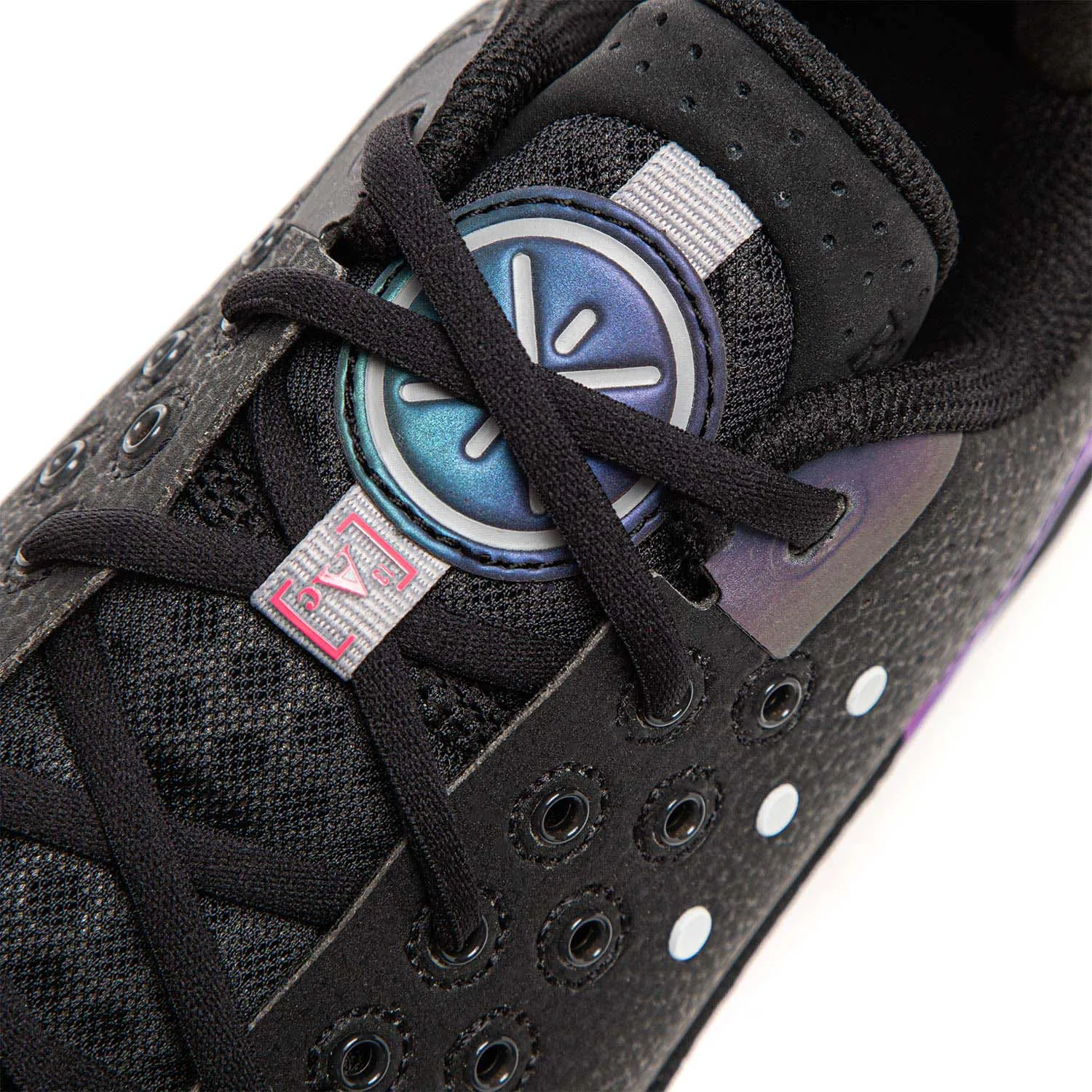 | جزئیات طراحی | رویه اصلی مشکی، زیره پنجه با طیف رنگی صورتی به بنفش. طرح غارهای ماه در پاشنه و امضای Dwyane Wade. |
