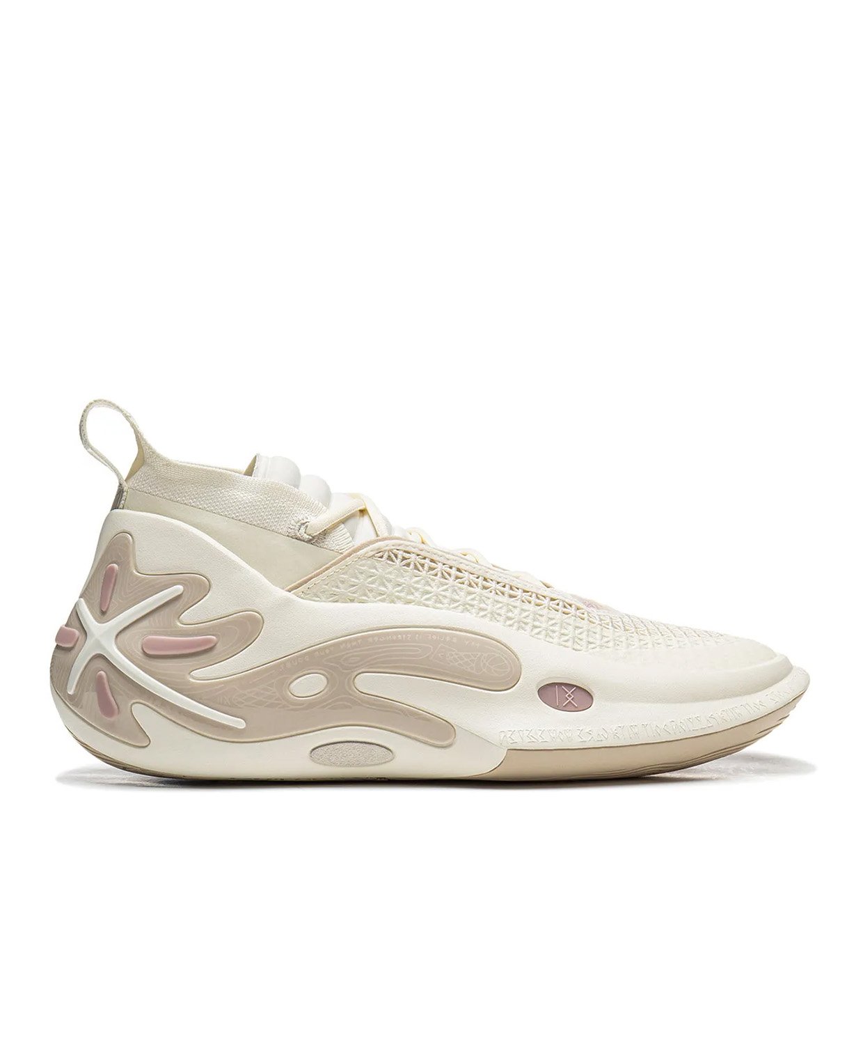 - ساختار زیره میانی EVA و TPU پاشنه: زیره میانی از ساختار EVA سبکی بهره میبرد. در پاشنه، یک قطعه TPU با شکل خاص تعبیه شده که با عناصر مربوط به دوران حرفهای وید تزئین شده است. این ساختار ثبات، سبکی و پشتیبانی لازم برای تغییر جهتهای چندجهته را تضمین میکند.