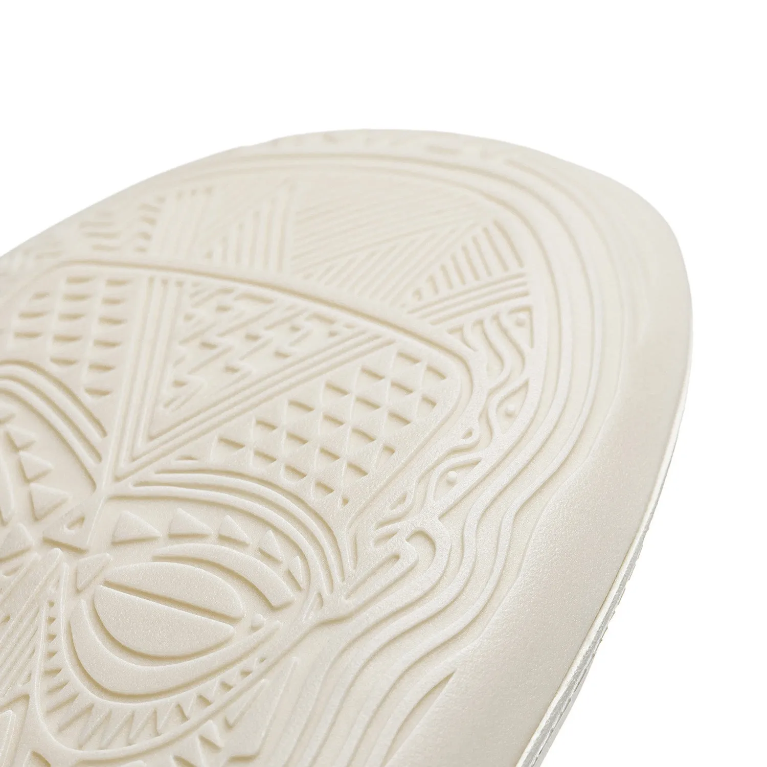 - ساختار زیره میانی EVA و TPU پاشنه: زیره میانی از ساختار EVA سبکی بهره میبرد. در پاشنه، یک قطعه TPU با شکل خاص تعبیه شده که با عناصر مربوط به دوران حرفهای وید تزئین شده است. این ساختار ثبات، سبکی و پشتیبانی لازم برای تغییر جهتهای چندجهته را تضمین میکند.