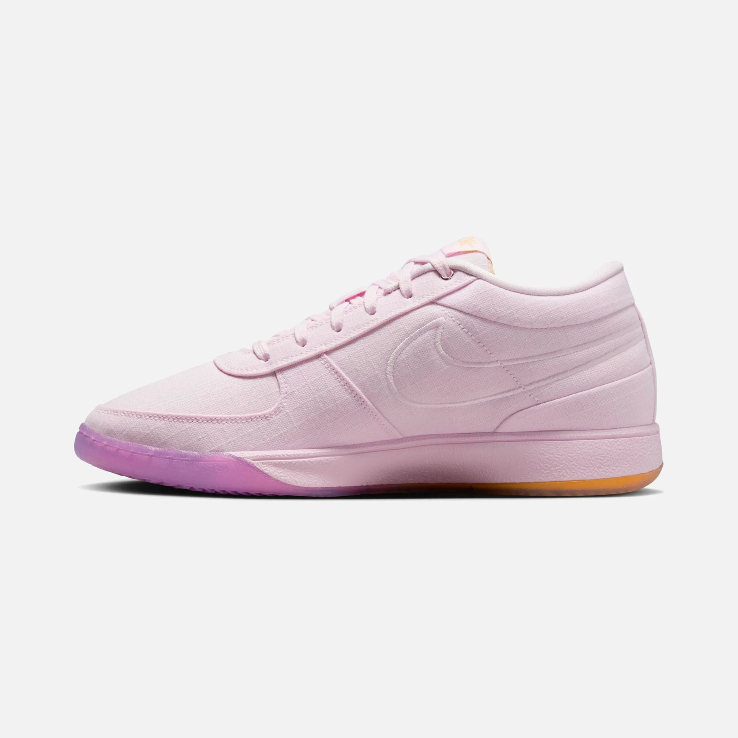 - تم رنگی: این نسخه از اجرای تکرنگ و مونوتونال پیروی میکند، بهطوری که رویه کفش بهصورت یکپارچه در سایههای صورتی (“Beyond Pink” و “Pink Foam”) پوشیده شده است. این رنگبندی جسورانه، آن را در فهرست بهترین کفشهای صورتی بسکتبال قرار داده است.