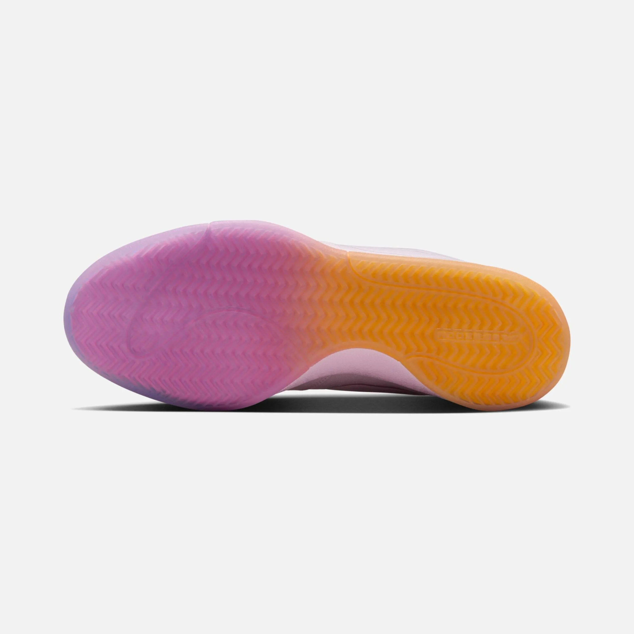 - اشاره به لباس تیم: برجستهترین جزئیات این مدل در زیره آن نهفته است. زیره شفاف دارای یک گرادیان رنگی خیرهکننده است که از بنفش زنده (Vivid Grape) به سمت طلای آسمانی (Celestial Gold) تغییر میکند. این گرادیان به زیبایی یادآور لباسهای کلاسیک “Valley” فینیکس سانز است.